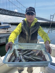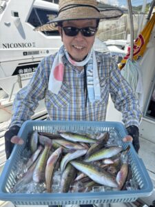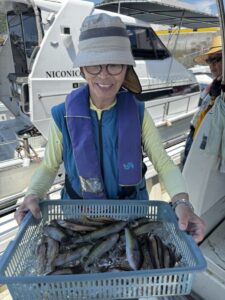 開始からコンスタントヒットで順調、潮止まりちょっと失速しましたが、他はずっとポツポツ釣れTOP約50匹、皆さん楽しめました(^-^)v